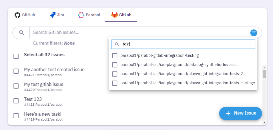 Parabol’s two-way integration lets you search for the issues you want using GitLab’s search syntax, then select the ones you want to estimate.